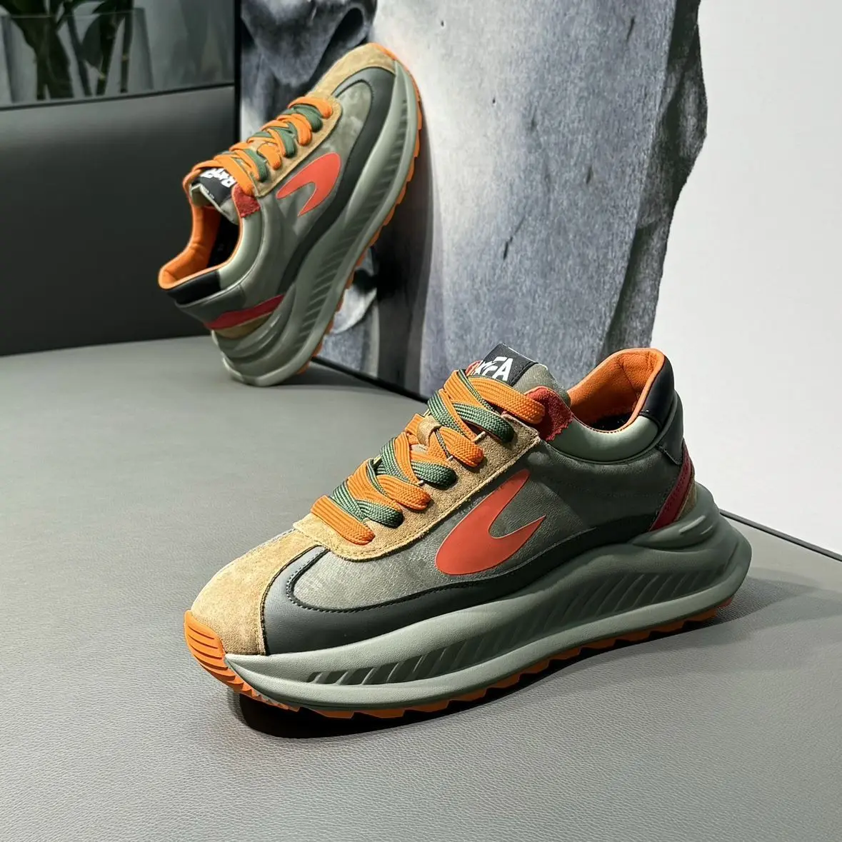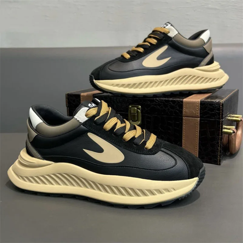 2026 Men's Casual Running Sneakers Anti-Slippery Breathable PU Upper Chunky Shoes with Comfort Walking Style